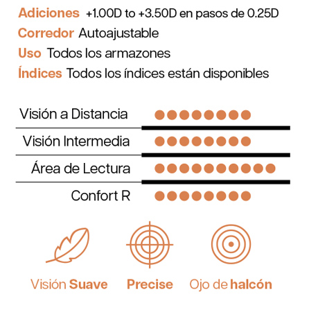 Nuestro diseño Luxury 3.0 utiliza la tecnología EYEVIEW para brindar un rendimiento óptico más consistente, independientemente de la potencia de prescripción. El diseño ahora incluye EYEPOWER para garantizar la mejor comodidad, según los armazones o las características de cada paciente. Recomendado para presbitas que eligen su segundo diseño progresivo.